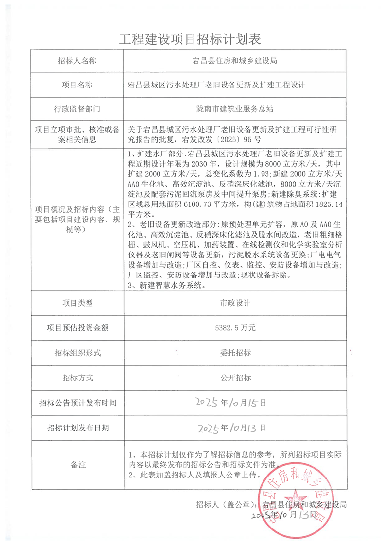 宕昌縣城區(qū)污水處理廠老舊設(shè)備更新及擴(kuò)建工程設(shè)計(jì)