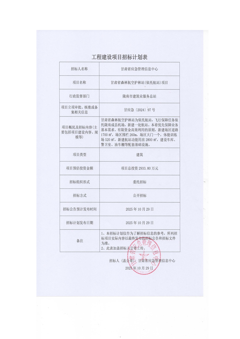 甘肅省森林航空護(hù)林站(依托航站)項(xiàng)目