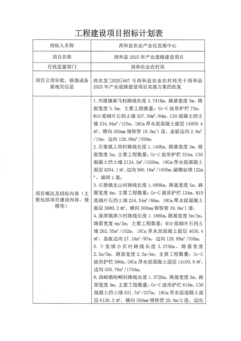 西和縣2025年產業(yè)道路建設項目