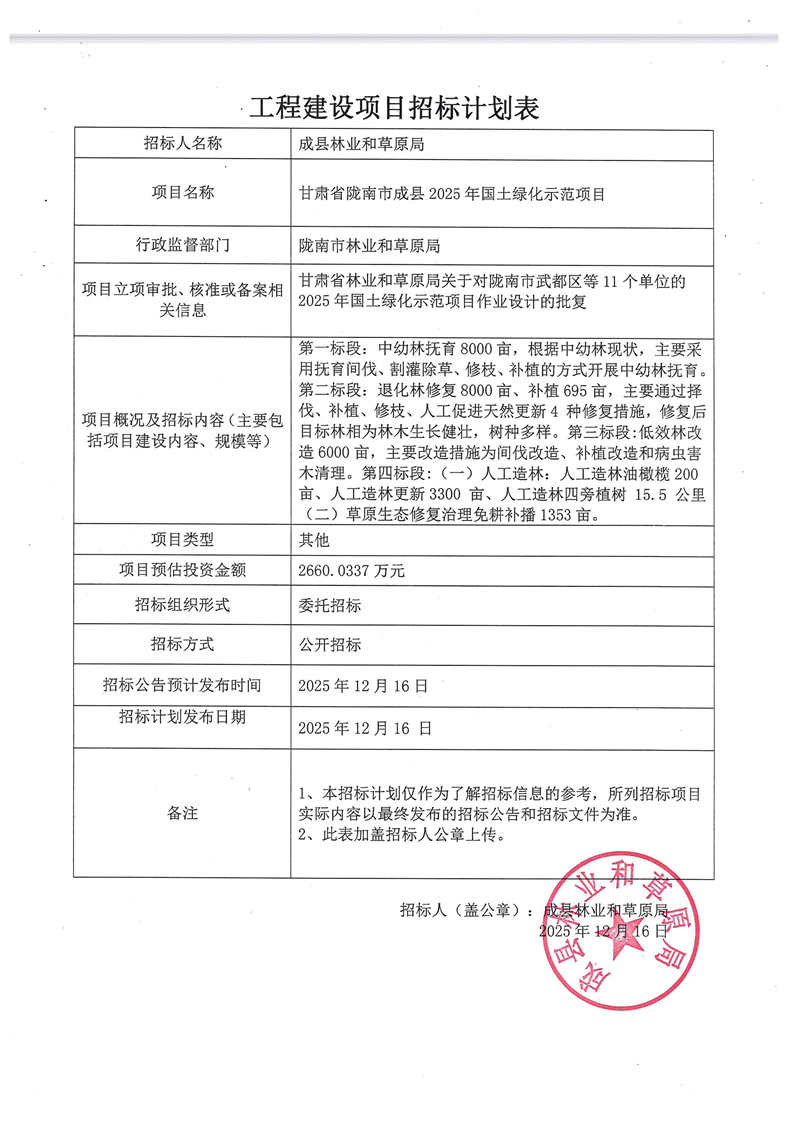 甘肅省隴南市成縣2025年國土綠化示范項目