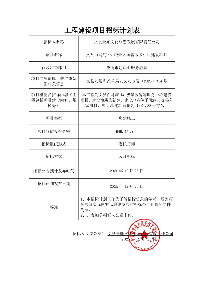 文縣白馬河4A級景區(qū)游客服務(wù)中心建設(shè)項(xiàng)目